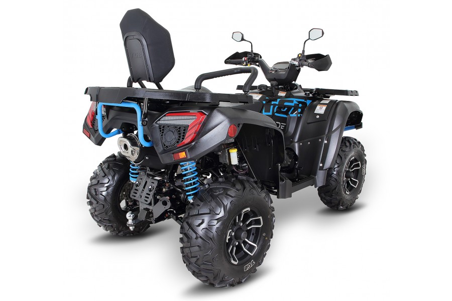 Homologizált vonóhorog, elektromos első és hátsó differenciálzár, 2x4 / 4x4 ,fém fékcsövek, vonzó 8-küllős alumínium kerekek, márkás 25 "-es gumiabroncsok, kormányvédő, robusztus első lökhárító, csomagtartók, teljes értékű utasülés háttámlával és fogantyúval, 3000 lbs vízálló csörlő, 12 V-os aljzat, teljes LED-es világítás.